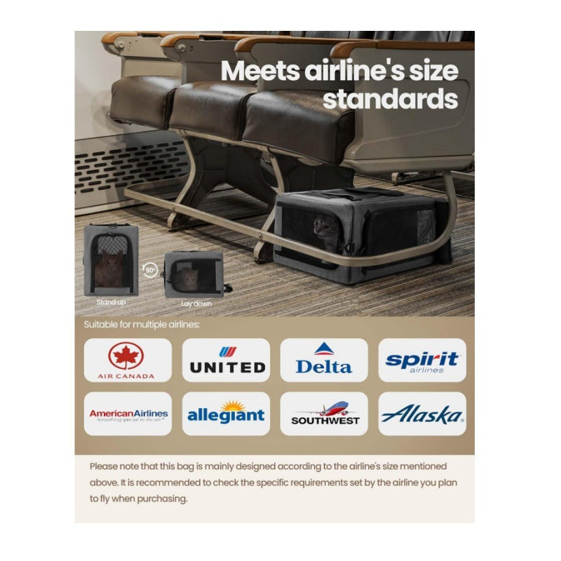 For car trips, the adjustable seat belt loop and lockable zippers add double safety. Lightweight yet durable, the carrier is easy to assemble, collapsible for storage, and can be carried with padded top handles or an adjustable shoulder strap.